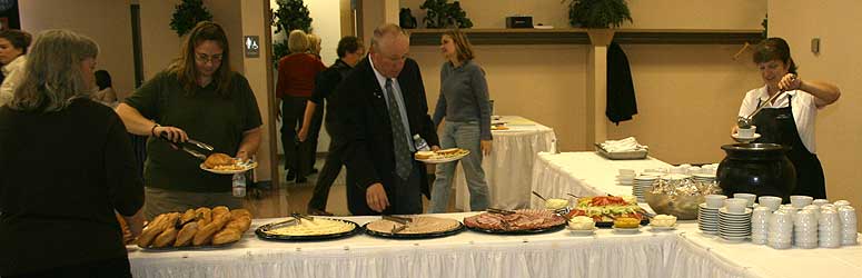 Our experienced staff specializes in wedding receptions, retirements, anniversaries, conferences, seminars, holiday parties and trade shows. Amenities include, but are not limited to full bar service, large dance floor, elegant lighting, and ample parking.